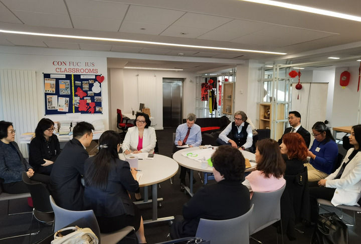 9月23日,在英国兰卡斯特大学主办的“一带一路”倡议跨学科会议期间,中外学者参加科研项目对接研讨会。新华社发